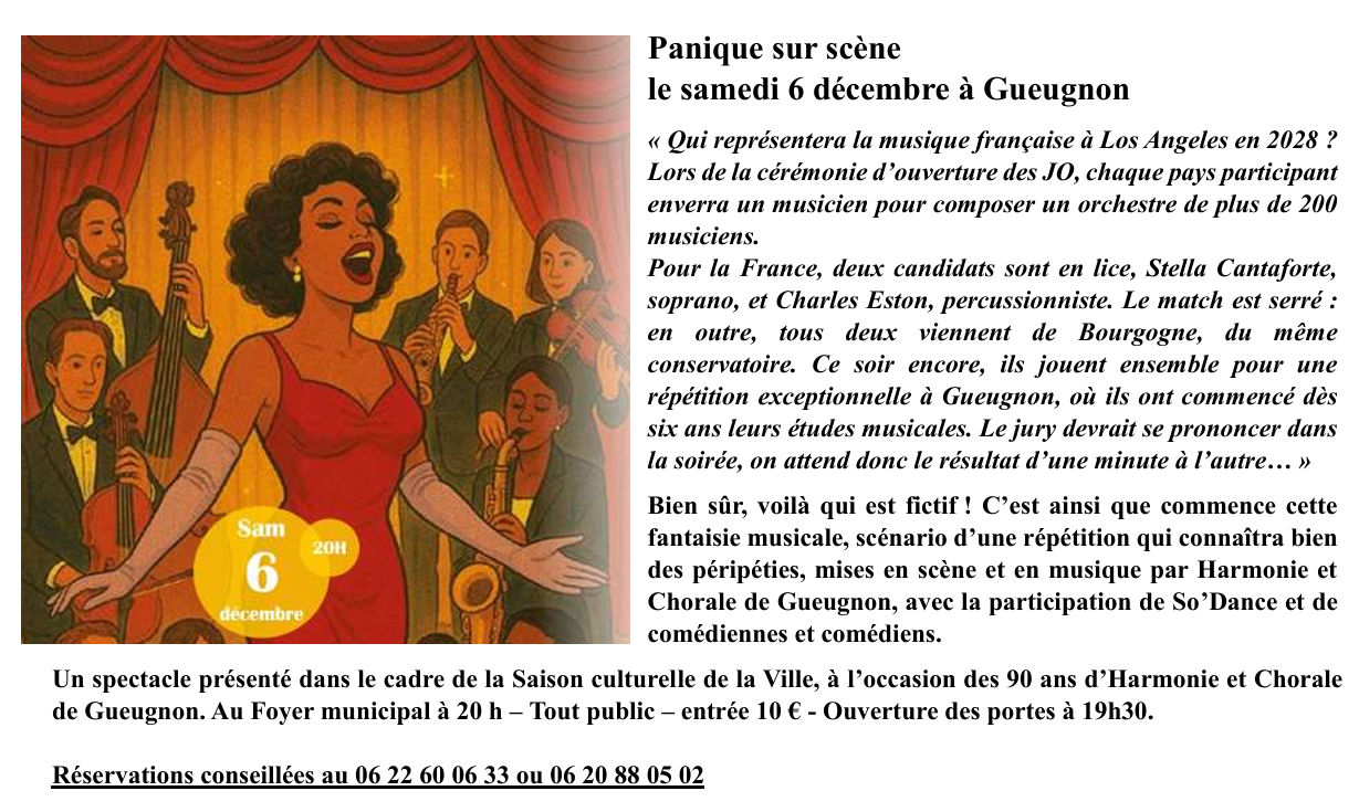 La Fanfare de Gueugnon, née en 1935, devenue en 1976 Harmonie grâce à l’arrivée de différents pupitres de la famille des bois (clarinettes, flûtes, saxophones) puis enrichie d’une Chorale en 1990, fête cette année son 90e anniversaire.